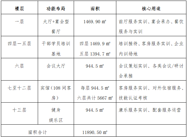 资金投入:承担酒店装修工程的全部费用,按照国家三星级酒店标准(及以上)进行设计与施工,确保装修质量符合行业规范与安全标准,装修内容需包含各类实训设施设备的配置。