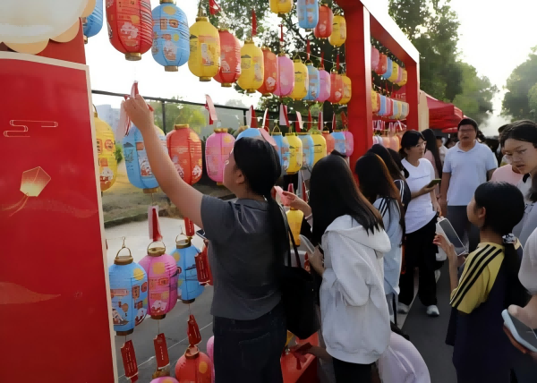 游园会在学生舞蹈社团的精彩才艺表演中拉开帷幕。活动现场精心设置了包括“诗词飞花令”“诗词大考验”“民俗灯谜趣猜”“诗词背诵与创作区”以及中秋趣味游戏等多个游戏互动区域。在灯笼高挂的民俗趣猜灯谜区,百余条融知识性与趣味性于一体的民俗、诗词谜语吸引了大量师生驻足思索。趣味游戏区同样人气爆棚,源自古代的礼仪游戏“投壶”,成为了当天下午最火爆的互动点。